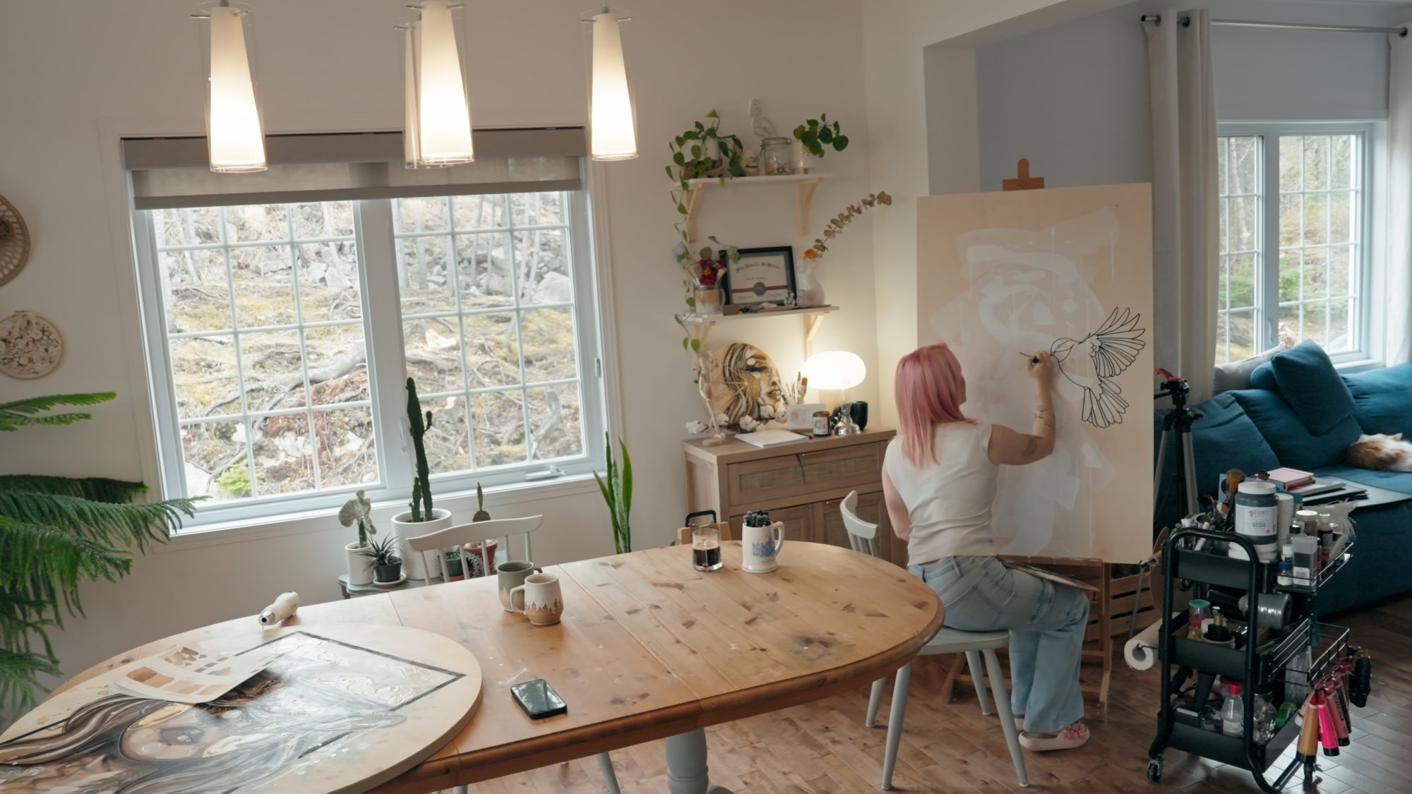 À la suite d’un épuisement professionnel, Camille commence à peindre au café en pleine nuit, faute d’aquarelle. Ce geste marque le début de sa nouvelle vie d’artiste.